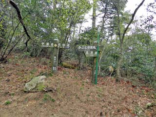 2013/4/17(11:14) 「左に、大滑岩0.3km。直進、かぶと岩展望台0.4km」 の標識を通過。 先ほどの標識よりも「かぶと岩展望台」までの距離が 増えているが、山の標識ではよくある事である。 |