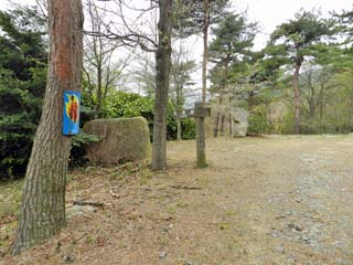 2013/4/17(11:35) 「大滑岩230m かぶと岩園地210m」と書かれた 標識を右に折れ、「大滑岩」に向かう。 |