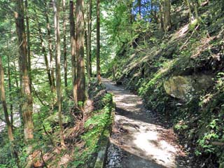 2016/5/18(10:05) 「黒淵」の渡舟乗場までの遊歩道は、幅は狭いが、 道はしっかりしており、緩い傾斜はあるものの、 急な坂もなく歩きやすい。 |