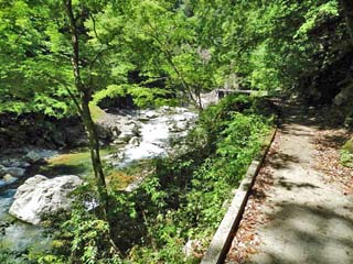 2016/5/18(10:23) 「五立」の脇を流れる「柴木川」。 「栂崎」から「女夫淵」の間は、静の渓谷が続く。 |