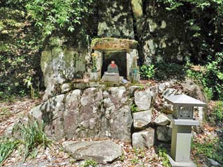 2016/5/18(10:35) 「女夫淵」近くのお地蔵様。 このお地蔵様は、昭和27年(1952)の11月、高校生と 教師計30名が記念撮影をしていたところ、コンクリート の桟道が崩れ、生徒7名が死亡したという事故があり、 その供養のために造られたという。 |