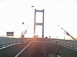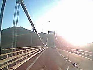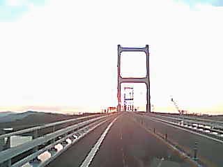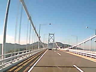 「因島大橋」中央付近。 橋は2層構造で、下の部分が「自転車歩行者専用道路」 になっている。 |