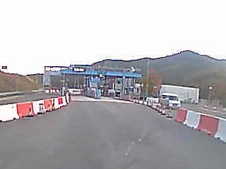 「大三島IC」料金所。 愛媛県側からの「多々羅大橋」を見るため、 「大三島IC」で「しまなみ海道」を下りる。 |