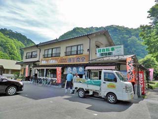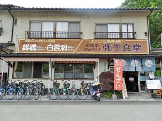 2016/5/19(10:52) 「帝釈第二駐車場(弥生食堂)」に到着。 店の前に並ぶのは「貸自転車」。 |