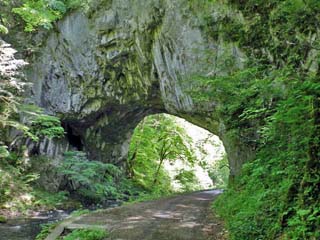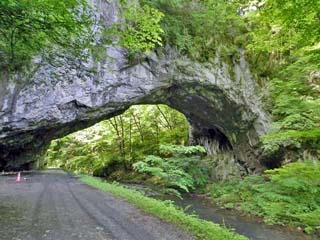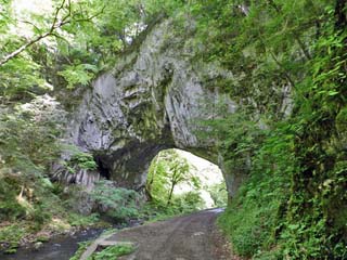 2016/5/19(9:18) 前方に「雄橋」が見えている。 「雄橋(おんばし)」は、カルスト地形の石灰岩を 河川の水が浸食し形成された天然の橋で、 その大きさは、全長90m、幅18m、高さ40mと、 アメリカのバージニア州にあるロック・ブリッジと 肩を並べる。 写真をクリックすると「雄橋」の案内板(800x600)が 表示されます。 |