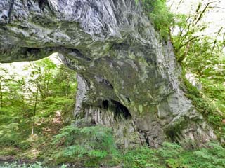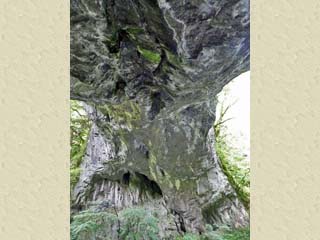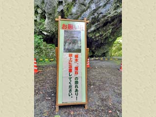 2016/5/19(9:20) 「雄橋」下のバリケード。 倒木や落石の恐れのある場所には、カラーコーンで バリケードが作られ、上を見ると、オーバーハング状に なっている部分では、岩の窪みの形などの細かい 部分が、看板の写真とも微妙に異なっており、 「雄橋」の崩壊が、現在も進んでいることが分かる。 写真をクリックすると「倒木」や「落石」の恐れがある 場所の写真(600x450)が表示されます。 |