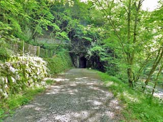 2016/5/19(9:38) 前方にはトンネルが見える。 「マス養魚場」で見かけた軽自動車が通るのは 間違いないが、普通車では入るのに躊躇して しまう程、幅の狭いトンネルである。 |