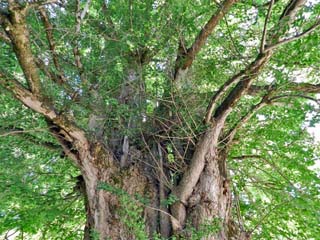 近づいてみると、先ず主幹の太さに圧倒される。また、地上3m付近から分かつという小枝は、