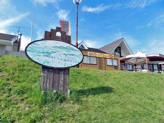 右の写真、手前に「バーベキューコーナー」、奥に「乳製品工場」が建つ。 左の写真をクリックすると「ひるぜんジャージーランド」の案内図(800x600)が表示されます。 |
