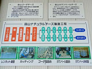 「蒜山ナチュラルチーズ」の製造工程。 「乳製品工場」の前には、工場の建物配置図や 「蒜山ナチュラルチーズ」の製造工程等を説明する