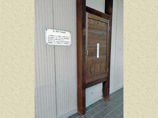 「ゴーダチーズ熟成室」の扉。 案内板には、「温度、湿度を厳重に管理する、 この熟成室で3~6ヶ月ゆっくり熟成させると、