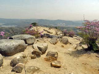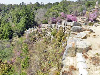 2013/4/16(11:24) 「屏風折れの石垣(第2展望台)」。 「屏風折れの石垣」から「東門」にかけての景色は、「西門」の復元が行われる以前の「鬼ノ城」を代表する風景であったという。 このページは、鬼ノ城(1/2)からの続きです。 直接このページに入られた方は、鬼ノ城(1/2)のページを先にご覧ください。 鬼ノ城(1/2)のページへ |
