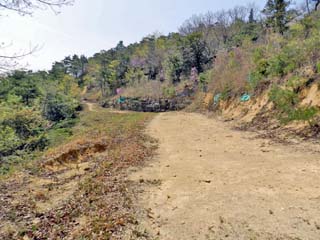 2013/4/16(11:46) 中が空の「石の祠」。 「岩屋三十三観音菩薩」が祀られていたのであろう。 「南門」に向かう。 「高石垣」から「南門」までの距離は、220m。 |