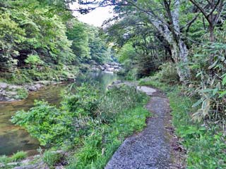遊歩道を上流に向かう。 |