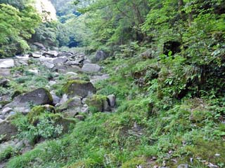 秋の紅葉時期の素晴らしさを、充分に想像できる 渓谷であった。 |