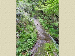 水の流れる場所を通過。 この写真は、振り返って撮影。 この場所では、車道側から「奥津川」に向けて、