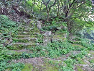 戻ると、すぐに石段を見つける。 この石段は、進行方向とは逆を向いていたため、 気付かないで、通り過ぎていた。 |