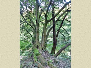 石段を上ると、道は葛折りになっており、前方に立つ この木で、Uターンするように向きを変える。 |