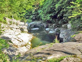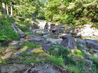 上流方向には、「甌穴群」の標識が見えている。 写真をクリックすると拡大写真(600x450)が 表示されます。 |