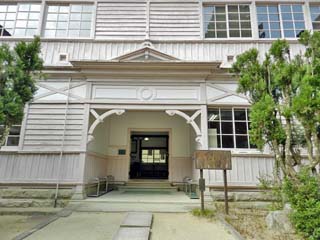 「資料館」。 建物は、明治38年(1905)、私立中学閑谷黌の学舎として 造られたもので、学舎本館が「資料館」の展示場として