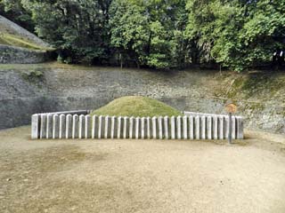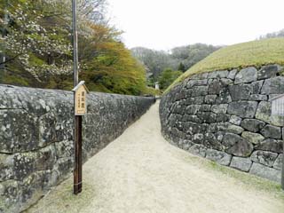 「火除山」の横を通り、西側の「資料館」へと向かう。 この写真は、帰りに撮影のため、時間が前後しています。 |