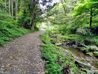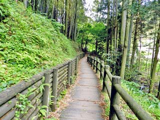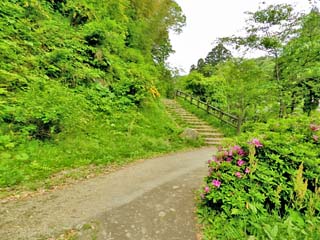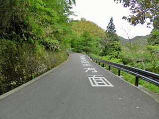 2012/5/12(8:37) 道路に書かれている案内に従い、この先を右に 入ると「遊歩道」である。