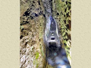 2012/5/12(9:56) 「龍源寺間歩」の入口。 この「龍源寺間歩」は、「大久保間歩(870m)」 に次ぐ大坑道で、昭和18年(1943)まで稼働して いたという。 また、石見銀山の中では唯一、常時公開されて いる間歩である。 注:「大久保間歩」も公開されてはいるが、期間 限定で、落盤等の恐れのない約150mを、完全 予約制のガイド付きツアーとしての公開である。 |