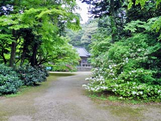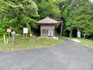 2012/5/11(12:10) 「華蔵寺」参道入口。 正面に写るのは、「小林如泥」作といわれる 「地蔵堂」。 「華蔵寺」は、臨済宗南禅寺派の末寺である。 標高456mの「枕木山」の頂上に位置し、 境内には、「中海」「弓ヶ浜」等を一望できる 二ヶ所の展望台が設けられ、その景観は雄大で 山陰唯一という。