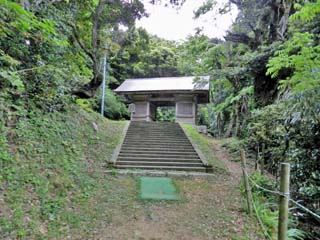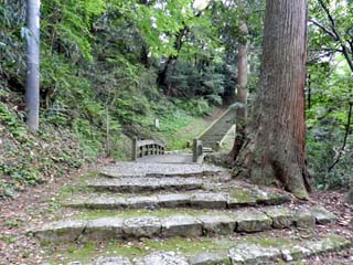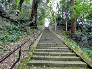 2012/5/11(12:13) 参道入口を入ると、すぐに長い階段が続く。 (境内まで、徒歩約15分) なお、今回は参道入口の駐車場が利用できたが、 ここは駐車可能台数が少ない。 満車時は、参道入口を通り過ぎた先の大駐車場に 車を止め、ここまで歩くか、参道を利用せずに 直接「境内」に向かうこともできる。