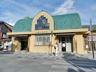 2018/9/25(15:18) 一畑電車「出雲大社前駅」。 一畑電車大社線の終着駅で、「出雲大社」の 最寄り駅である。 駅舎は、平成24年(2012)、西洋風に改装され、 駅舎脇(南側)には、日本最古級の 電車「デハニ50形」が展示されている。 写真をクリックすると一畑電車「出雲大社前駅」の ページが表示されます。 |