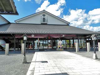 「安来節演芸館」の玄関前と、受付(公演時間等)。 「安来節演芸館」は、JR山陰本線「松江駅」から南東約15.2km。