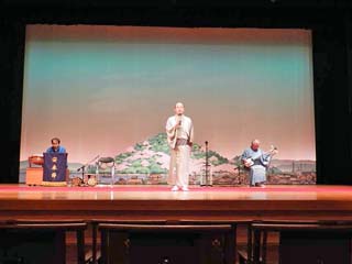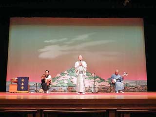 三の演目「唄」。 3番目の演目は、最初とは異なる女性が歌う。 写真をクリックすると歌い手を撮る写真(450x600)が 表示されます。 |
