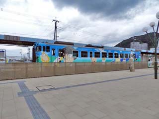 2018/9/26(13:29) 「鬼太郎列車」。 JR境線には、「鬼太郎列車」が走り、 16ある駅の全てには、妖怪の愛称名が 付けられている。 写真をクリックすると少し近づいて撮る 「鬼太郎列車」が表示(600x450)されます。 |