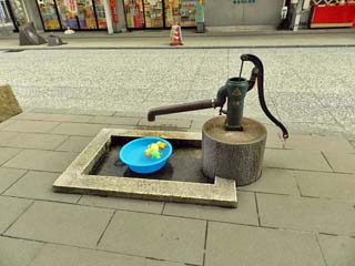 2018/9/26(15:01) 「目玉おやじ清めの水」。 「妖怪神社」の前に立ち、重い石の「目玉おやじ」 が、湧き出す水の力でゆっくりと回る。 また、「妖怪神社」には、「からくり妖怪 おみくじ」があり、おみくじを鬼太郎ファミリーが 運んでくれるという。 写真をクリックすると近づいて撮る 「目玉おやじ清めの水」が表示(600x450)されます。 |