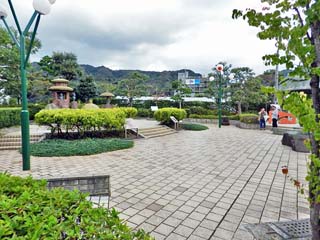 2018/9/26(15:07) 「妖怪広場」。 写真、左奥の妖怪オアシス「河童の泉」では、 9体の妖怪たちがくつろぐ。 |