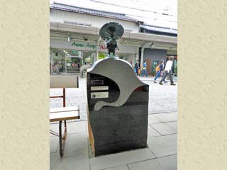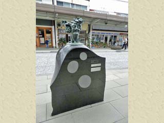 本ページでは、鳥取県境港市のJR境港駅から本町間にある「水木しげるロード」に棲む妖怪たちを紹介する。 「水木しげるロード」は、5つのゾーンに分かれ、合計177体(平成30年(2018)9月現在)の妖怪が棲むが、 本ページでは、「身近なところにひそむ妖怪たち」ゾーン南側に棲む妖怪の各ブロンズ像全体を撮影した写真を表示。 写真をクリックすると、妖怪部分を切抜く画像が拡大表示されます。 なお、本ページは、「水木しげるロード」のページから派生する子ウインドです。 直接このページに入られた方は、先に「水木しげるロード」のページをご覧下さい。 |