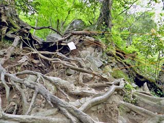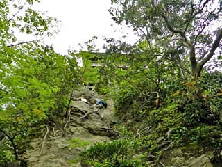 2012/5/10(10:32) 「地蔵堂」が見えてきた。 「文殊堂」から「地蔵堂」までは、 わずか70m程である。 「三佛寺」から「文殊堂」までは、400m程で あったが、「文殊堂」から先は「投入堂」まで でも、260m程しかない。 この先は、お堂が連続して現れる。 なお、このページは、三徳山三佛寺(参道入口~ 文殊堂他)のページからの続きです。 直接、このページに入られた方は、本ページ下に 関連ページへのハイパーリンクがありますので、 三徳山三佛寺(参道入口~文殊堂他)のページも ご覧下さい。