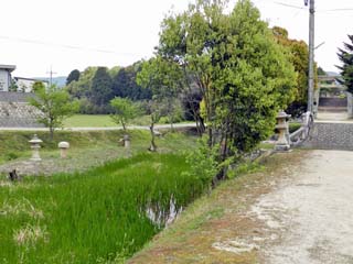 参道の南(右)側。 石の反橋(太鼓橋)の先には、小祠でもあるのだろうか。 |