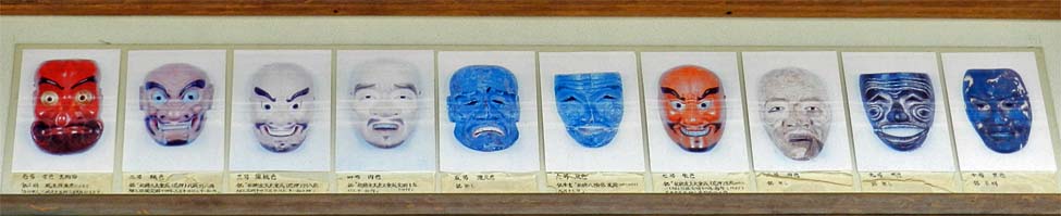 この写真を切り抜きパノラマ風にした画像が、この直下に あります。 写真をクリックすると「能面」の案内板(800x600)が