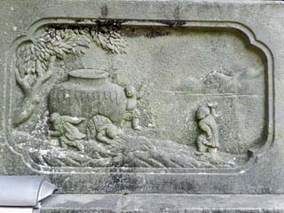 2012/5/13(8:12) 「二孝子の美談の碑」。 文化12年(1815)、母の産後の病気平癒を祈願し 7日7夜断食して金比羅社に詣でた長男の権蔵と 三男利吉の2人は、満願の夜丸裸で雪の中を家に 帰る途中、凍死したという事件が、「香川津の 二孝子の美談」として語り伝えられたという。