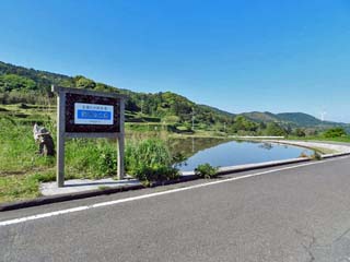 棚田とは道路を挟んだ反対側にある、「深田ため池」。 この溜池は、「全国ため池百選」に指定され、「東後畑」の棚田の主水源となっている。