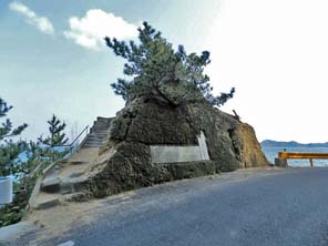 すぐ横にあった岩の上から写真を撮り、ここでUターン。 岩には石段が付けられ、上にはブロックを積んだ「祠」が造られていた。 |