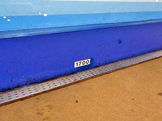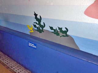 2016/5/16(14:30,14:31) 「関門トンネル人道」の下関側。 エレベータを降りたところは、海面下約44m(地下約55m)。 エレベータ前は、ホールのようになっており、「関門海峡散策マップ」や「記念スタンプ台」等がある。 「人道」の利用者は、観光客は勿論のこと、地元の人達も通勤、通学や買物等で、日常利用している。 特に、ウォーキングやジョギングでは、天候を気にする必要がないため、多くの人が利用しており、 右の写真で柱の横に置かれるのは、ジョギング中の人が、置いている飲物とタオルである。 なお、「ここで、停電になったら」と考えると、一瞬不安を覚えるのだが、このトンネル内には、1日に4,800㌧。 ドラム缶にして24,000本分の海水がしみ出ているという。万一の停電時にも、この海水を汲み出すため、 一般家庭1,000軒分の電気を送電できるだけの発電装置が備え付けられているという。 |