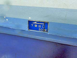 2016/5/16(14:39) 「人道門司側口」まで、あと500m。 トンネル内の位置を示す標識は、以下の3種類が 書かれているようである。 ・「人道門司側口」までの距離(青色の標識) ・「人道下関側口」までの距離(青色の標識) ・「車道門司側口」からの距離(白色の標識) |