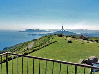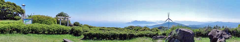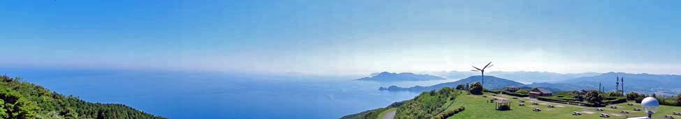 なっており、手前に「千畳敷」の草原。その奥(東)に、 「今岬」や「青海島」が見える。 写真をクリックすると拡大写真(600x450)が 表示されます。 |