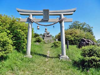 「宮地大明神」と「煌めく平和の燈火」。 いずれも、キャンプ場東にある「展望所」脇にある。 |