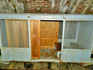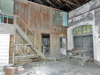 2013/11/24(15:33,15:34) 「第三変電所」の中。 「東平ゾーン」に現存している施設の中でも、建物の内部まで当時の状態を残すのは、 この「第三変電所」だけである。 |