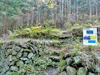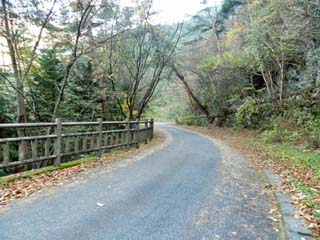 2013/11/24(15:25) 「渓谷遊歩道」。 「坑内電車」は、「喜三谷」から「大マンプ」の隧道へと 入るが、「大マンプ」は、現在、閉鎖されているため、 見学者は、「渓谷遊歩道」を歩く。 |