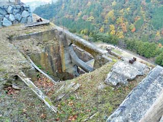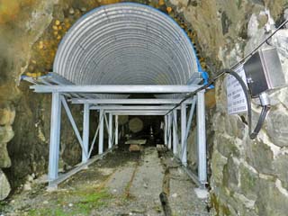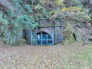 2013/11/24(15:42) 「火薬庫跡」。 坑道掘削用のダイナマイトなどを保管したといい、 入口は、不測の事態が発生しても、爆風が人や施設に 影響を与えないよう、斜めに向けているという。 写真をクリックすると「火薬庫跡」の入口部分が 表示(600x450)されます。 |