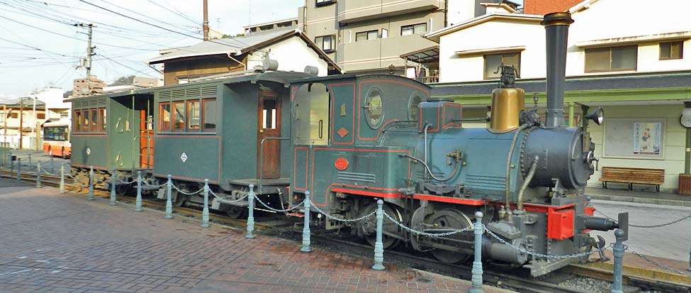 夏目漱石が小説「坊っちゃん」の中で「マッチ箱のような汽車」と形容した伊予鉄道の列車を、平成13年(2001)、市民の要望により復活させたという。